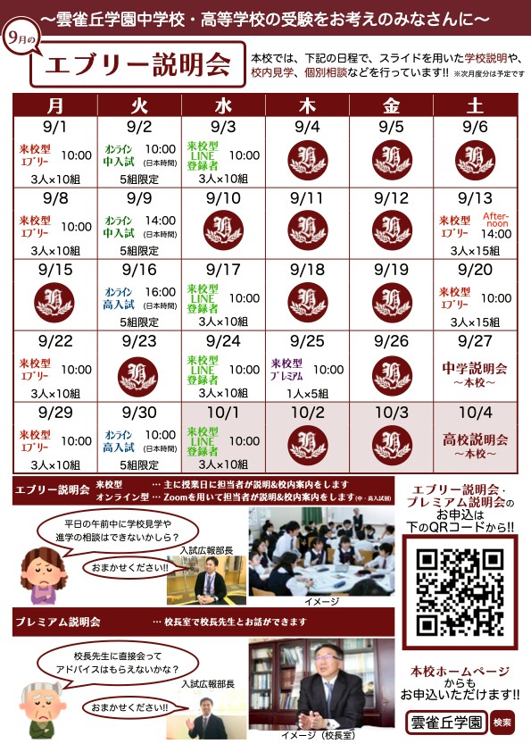 ◆9月度 2026年受験生向け説明会のお知らせ