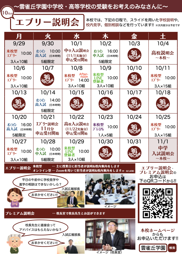 ◆10月度 2026年受験生向け説明会のお知らせ